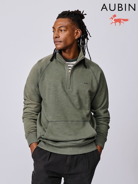 Aubin Green Castleton Slub Zip Neck Sweatshirt