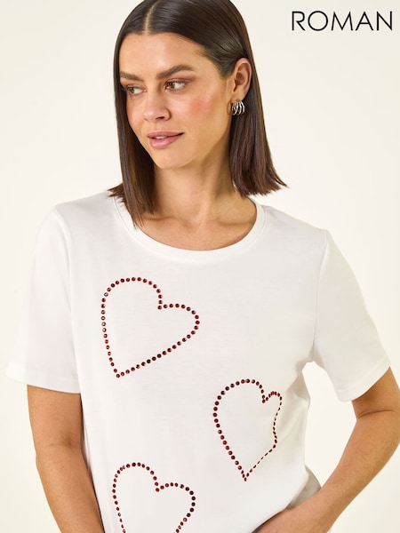 Blanco - Embellished Heart Short Sleeve Crew Neck T-Shirt