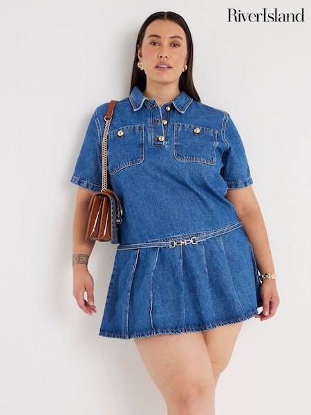 River Island Short Sleeve Pleated Denim Mini Dress