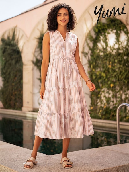Yumi Stripe With Embroidered Flower Cotton Dress