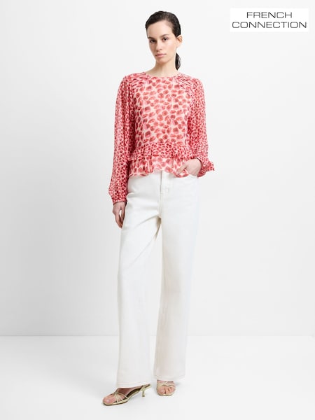 Reiss Maddie Pleated Embroidered Long-Sleeve Blouse