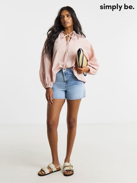 South Beach Stripe Long Sleeve Tie Front Shirt with Pockets