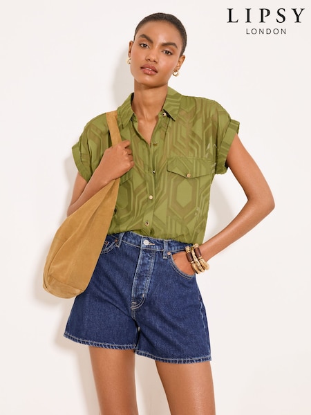 Verde caqui - Lipsy Geo Burnout Short Sleeve Shirt