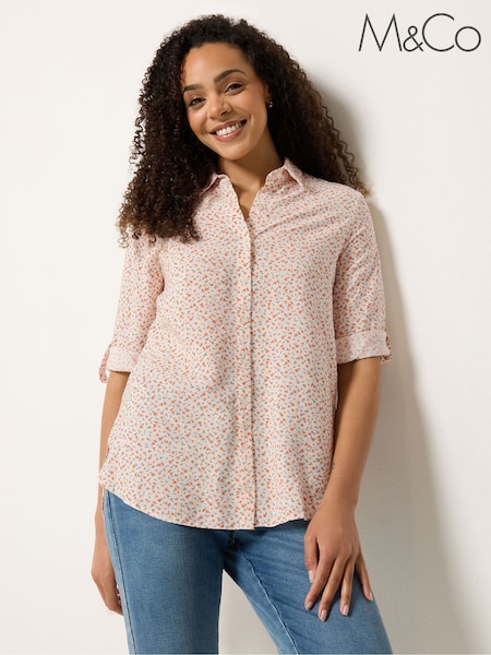 Estampado floral blanco - Blusa con cuello anudado M&Co