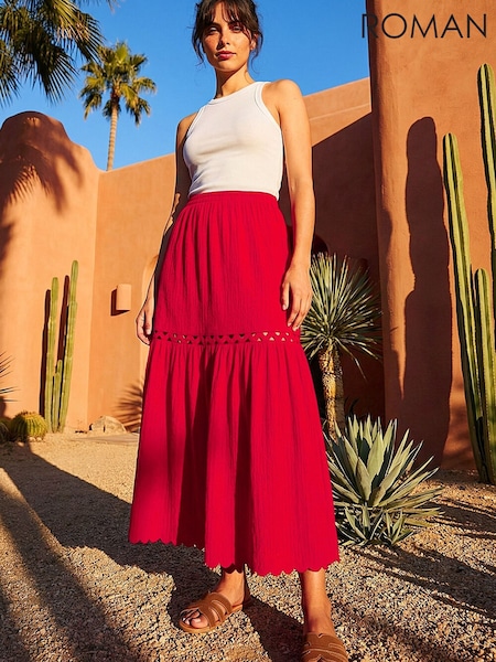 Roman Scallop Trim Midi Skirt