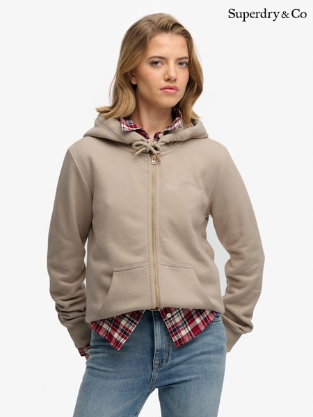 Crema - Sudadera con capucha y cremallera con logo básico de Superdry