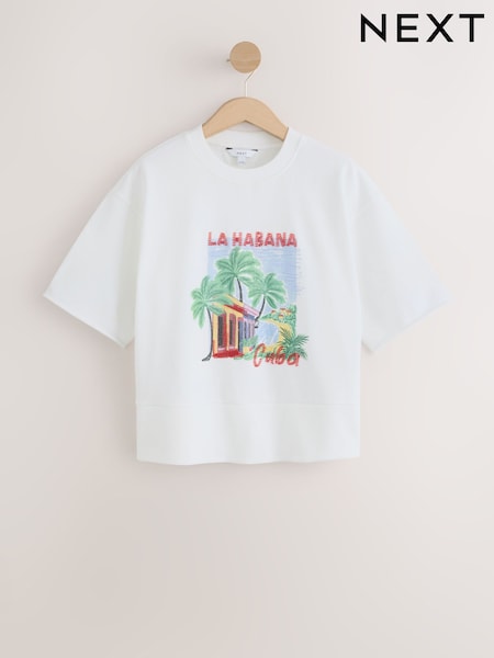 Blanco crudo - Beaded Summer Graphic Short Sleeve Sweatshirt