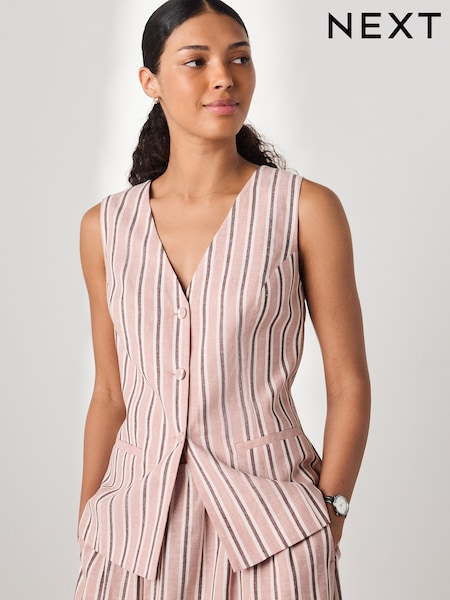 Rayas rosas - N. Premium Linen Cotton Blend Waistcoat