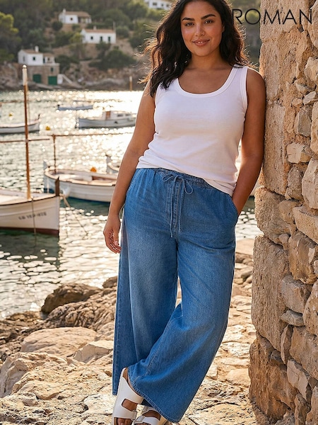 Natural - Roman Petite Cotton Stretch Pocket Denim Trousers
