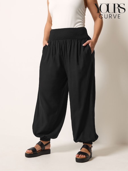 Negro - Yours Curve Shirred Waist Balloon Trousers