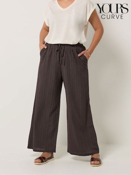 Marrón - Yours Curve Textured Woven Wide Leg Trousers