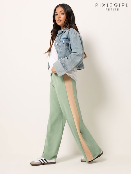 Verde - PixieGirl Petite Stripe Wide Leg Scuba Trousers