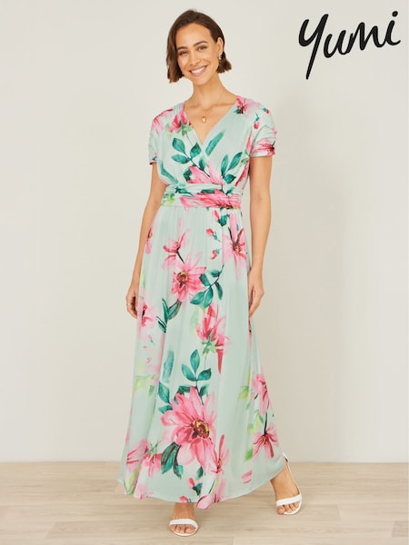 Verde - Mono largo cruzado con estampado geométrico de Yumi